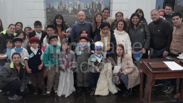 Además estuvieron presentes los niños de la Unidad de Desarrollo Infantil (UDI) y repartieron escarapelas y torta fritas a los concejales.