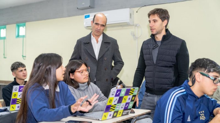 Durante su visita, el Intendente habló con los directivos y con los alumnos, y expresó: “Estamos convencidos de que San Nicolás puede convertirse en una ciudad modelo en innovación, por eso vamos a seguir acompañando a los jóvenes para que puedan formarse e insertarse laboralmente en el mundo de la tecnología”.