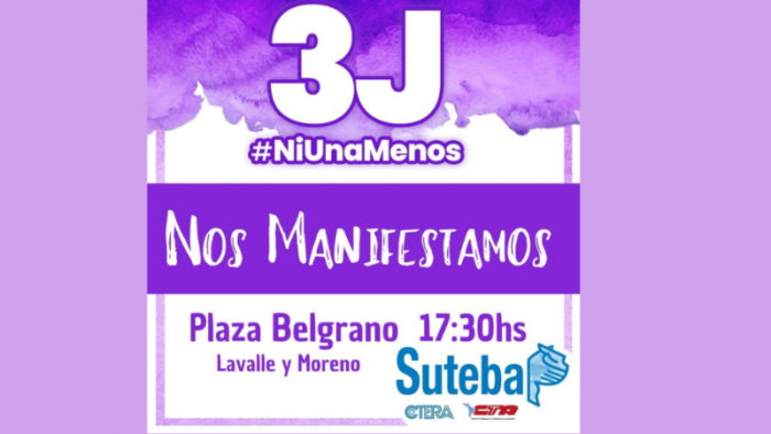 Este lunes 3 de junio a las 17:30hs se llevará a cabo la marcha “3J Ni una menos”, en la plaza Belgrano.
