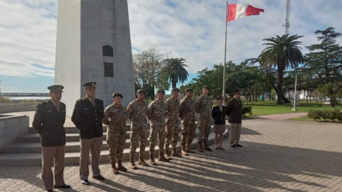 Así, junto al monumento al Libertador, se efectuó el izamiento de las Banderas de Argentina, Chile y Perú. Además entonaron las estrofas del himno nacional.