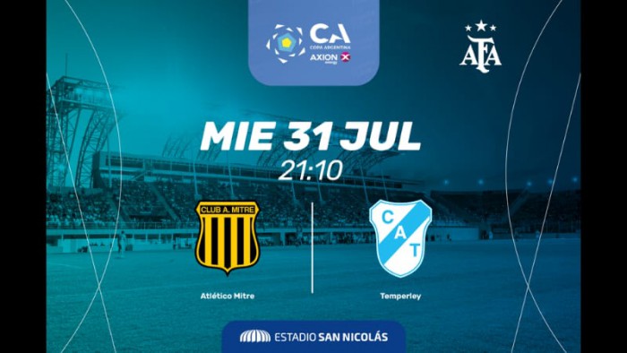 Este miércoles 31 de julio a las 21:10, el Estadio San Nicolás recibirá el encuentro entre Atlético Mitre y Temperley por los octavos de final de la Copa Argentina. Una vez más, nuestra ciudad recibirá a los fanáticos del fútbol para disfrutar de una nueva fecha del torneo que tiene el Estadio San Nicolás como un escenario fijo para todas sus ediciones.