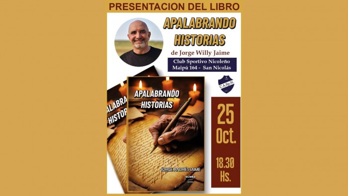Este viernes 25 de octubre, a las 18:30 horas, el escritor y artista radicado en San Nicolás, Jorge Andrés Jaime (Willy), estará presentando su primer libro en el Club Sportivo Nicoleño, en calle Maipú 164.