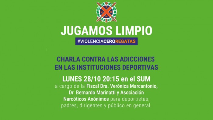 Este lunes a las 20:15 se llevará a cabo una charla en el Club Regatas contra las adicciones en las instituciones deportivas.