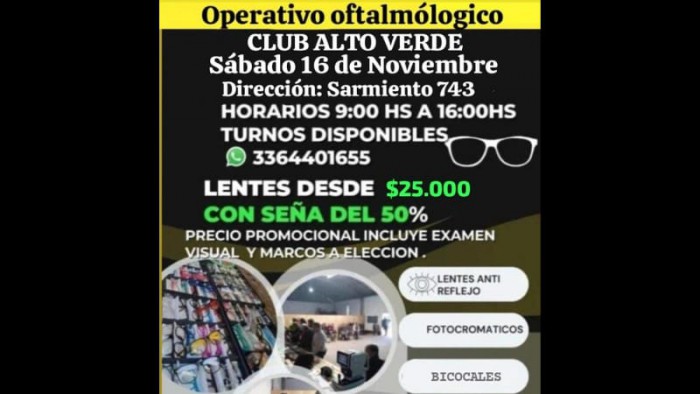 Se ofrecerán lentes desde $25.000 con seña del 50%. El precio promocional incluye examen visual y marcos a elección.