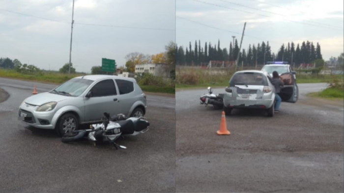 En Presidente Perón y Colectora Norte colisionaron un automóvil Ford Ka, guiado por una mujer de 35 años, y una motocicleta Yamaha FZ s FI, tripulada por un joven de 23.