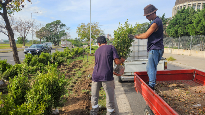 La Municipalidad de San Nicolás continúa trabajando en la plantación de nuevos arbustos en diferentes avenidas y lugares públicos de la ciudad.