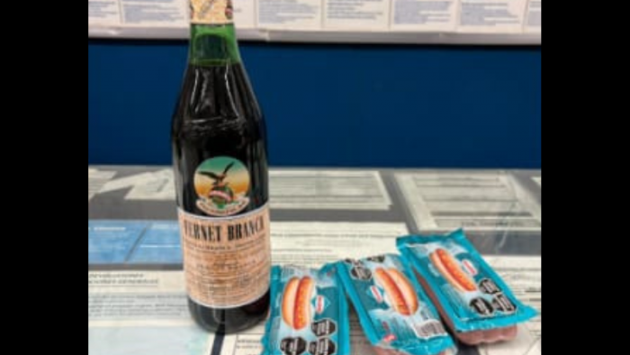 El sujeto había escondido entre sus prendas de vestir tres paquetes de salchichas y una botella de Fernet Branca de 750 ml.