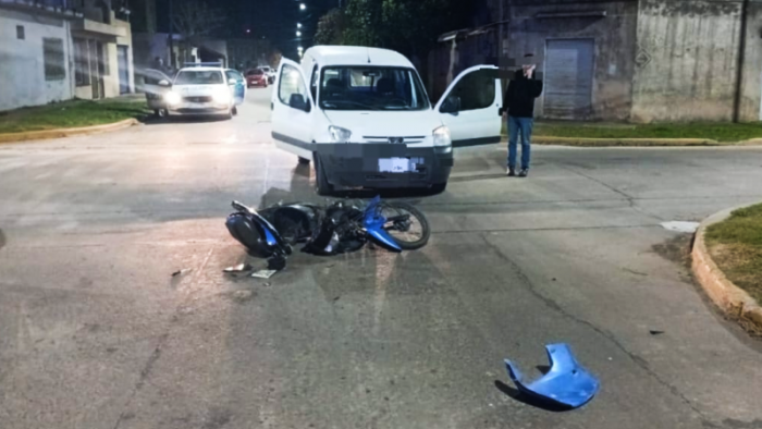En Boerr y 25 de Mayo colisionaron una motocicleta Gilera Smash, tripulada por dos jóvenes de 16 y 18 años, y una camioneta Peugeot Partner, al mando de un conductor de 21 años.