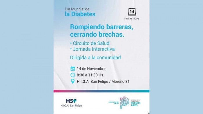 En el Día Mundial de la Diabetes, profesionales de las especialidades de Clínica Médica, Endocrinología, Enfermería, Kinesiología y Nutrición del Hospital San Felipe realizarán una jornada interactiva a la comunidad con el fin de realizar chequeos médicos, charlas de prevención y concientización a través de un Circuito de Salud.