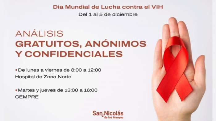 En el marco del Día Mundial de Lucha contra el VIH, que se conmemora cada 1 de diciembre, la Secretaría de Salud y Familia de la Municipalidad de San Nicolás llevará adelante jornadas de testeo gratuito, confidencial y anónimo. Los resultados se obtienen en solo diez minutos y el objetivo es promover y estimular la realización del test de manera voluntaria.