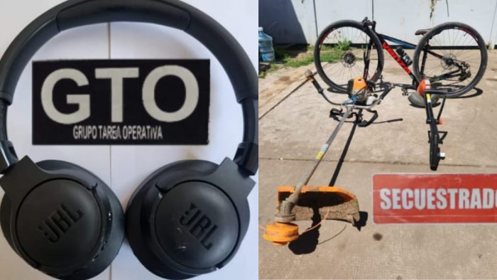 Allí procedieron a la aprehensión de un joven de 20 años y secuestraron la bicicleta marca Venzo, la motoguadaña Lusqtoff, los auriculares JBL y la bordeadora, junto con vestimenta utilizada por el delincuente al momento de cometer el ilícito.