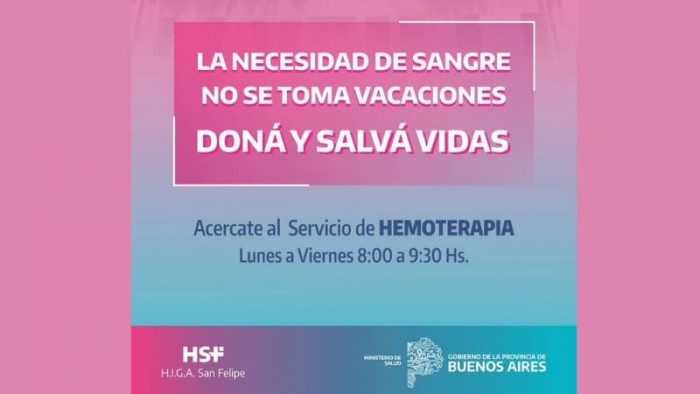 La campaña es impulsada por el HIGA San Felipe junto al Ministerio de Salud de la Provincia de Buenos Aires, con el objetivo de concientizar y sostener el stock de sangre necesario para el sistema de salud.
