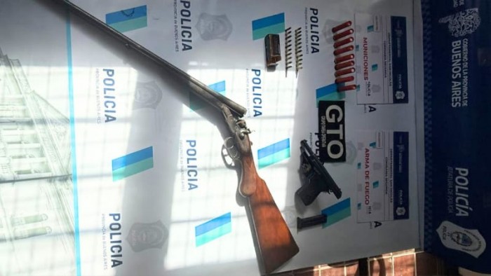 La diligencia fue efectivizada en Echeverría al 500 y arrojó resultado positiv., Allí incautaron una pistola Bersa calibre 22 mm, 21 municiones calibre 22 mm, una escopeta doble caño Byard calibre 28 mm, con culata de madera y 9 cartuchos de posta de guerra calibre 28 mm.