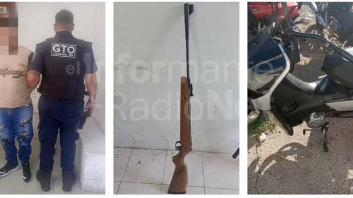 Secuestraron en el lugar un rifle de aire comprimido 5.5 tipo carabina y una motocicleta Guerrero modelo Trip color gris y negra.