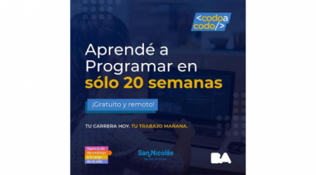El viernes finaliza el período de inscripción al programa Codo a Codo 4.0, cuyo objetivo es ofrecer una nueva oportunidad para desarrollar habilidades en el área de programación. Es un programa conjunto entre el Municipio y CABA.
