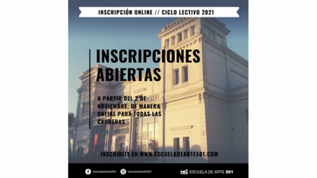 Este año, debido a las medidas de prevención frente al avance del COVID-19, las inscripciones para el ciclo lectivo 2021 se realizarán de forma online, a través de formularios que se encuentran en el sitio www.escueladearte501.com