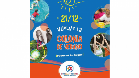 Quedan muy pocas vacantes para la Colonia de Verano en Jardín de Infantes Estrella de la Mañana. Ya está todo preparado para mañanas de risas, alegría y juegos. Para maternal, 3, 4, y 5 años. Consultas al 336-4620166.