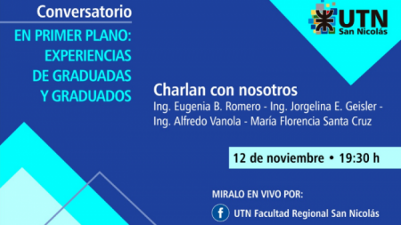 La charla se llevará a cabo el jueves 12 de noviembre a las 19:30 h y será transmitida en vivo por nuestra fan page institucional en Facebook "UTN Facultad Regional San Nicolás".