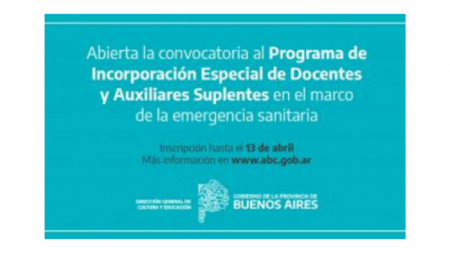 La Dirección General de Cultura y Educación de la provincia de Buenos Aires presentó un nuevo programa que convoca a docentes y auxiliares suplentes para sumarse a trabajar en las tareas ininterrumpibles