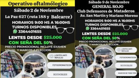 Se realizará el sábado 26 de octubre de 9:00 a 16:00 en calle Brown 856, esquina Cernada, en Barrio Del Carmen. Se ofrecerán lentes desde $23.000 con seña del 50%.