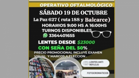 Libres del Sur organiza nuevamente el servicio de venta de anteojos a precios accesibles. Se realizará el sábado 19 de octubre de 9:00 a 16:00 en La Paz 627, Ruta 188 y Balcarce.
