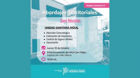 Este jueves 10 de octubre, a partir de las 10:00 hs, la Unidad Sanitaria Móvil se instalará en el estacionamiento del Hospital San Felipe, en el ingreso por calle Olleros.