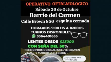 Libres del Sur organiza nuevamente el servicio de venta de anteojos a precios accesibles. Se realizará el sábado 26 de octubre de 9:00 a 16:00 en calle Brown 856, esquina Cernada, en Barrio Del Carmen.