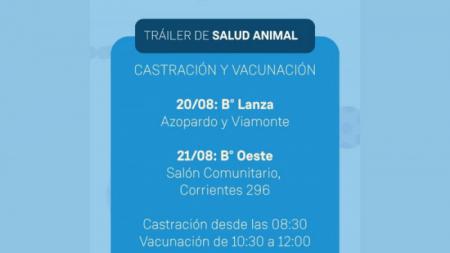 El martes 27 de agosto estará ubicado en San José Obrero y Gardel, en barrio 21 de Septiembre, mientras que el miércoles 28 brindará el servicio en Tucumán 497, barrio Las Viñas.