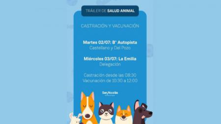 El martes 2 de julio, el tráiler de castración y vacunación de la Municipalidad se encontrará brindando el servicio en Castellano y Del Pozo, barrio Autopista, y el miércoles 3 de julio, en La Emilia.