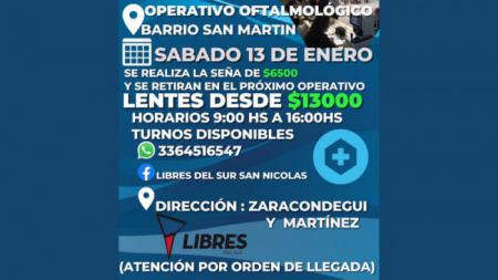 Libres del Sur organiza nuevamente el servicio de venta de anteojos a precios accesibles y la entrega de los tramitados en el operativo anterior. Se realizará el sábado 13 de enero de 9:00 a 16:00 en Zaracondegui y Martínez.