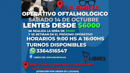 Libres del Sur organiza nuevamente el servicio de venta de anteojos a precios accesibles y la entrega de los tramitados en el operativo anterior. La atención será por orden de llegada.