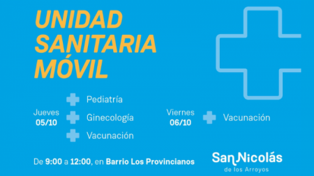 El viernes 6 de octubre arribará la Unidad Sanitaria Móvil zona oeste. Allí se atenderá por orden de llegada de 12 a 15hs en calle Pedro Goitia 1684.
