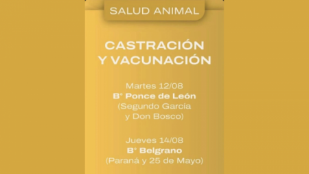 Este martes 12 de agosto estará en barrio Ponce de León, en calle Segundo Garcia y Don Bosco. Además, el miércoles 13 estará en barrio Belgrano ubicado en Paraná y 25 de Mayo.