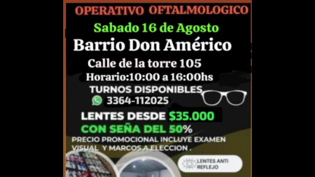 Libres del Sur organiza nuevamente el servicio de venta de anteojos a precios accesibles. Se realizará el sábado 16 de agosto, de 10:00 a 16:00 hs en calle De la Torre 105, barrio Don Américo.