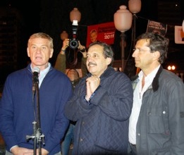 El candidato a presidente por la Unión por el Desarrollo Social, Udeso, Ricardo Alfonsín, y el candidato a gobernador bonaerense por esa fuerza, Francisco de Narváez fueron recibidos por los precandidatos Pedro Novau y Rodolfo de Felipe. Acompañados de algunos integrantes de la lista de concejales recorrieron las calles de la ciudad para dialogar con la gente.