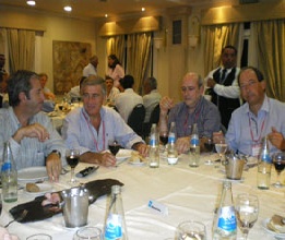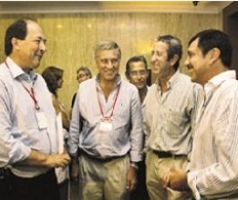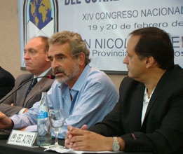 El presidente del Comité Nacional, Ernesto Sanz, junto a los titulares de los bloques legislativos, el senador Gerardo Morales y el diputado Oscar Aguad, y el presidente de la Convención Nacional partidaria, Hipólito Solari Yrigoyen, ofrecieron una conferencia de prensa al término de la primera jornada de la reunión de legisladores radicales en San Nicolás. En la foto se observa la cena que compartieron al finalizar la misma junto al Vice Presidente