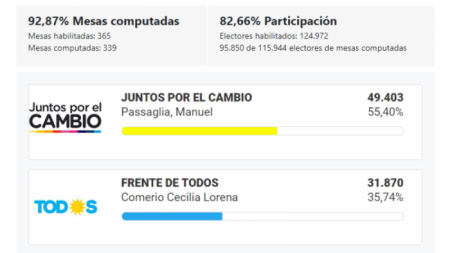 Hasta el momento, fueron escrutadas un total de 92.82% de las mesas en San Nicolás, 339 de las 365 mesas habilitadas.