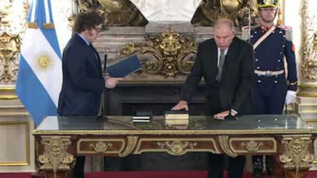 Pasadas las 18.30, en el Salón Blanco de la Casa Rosada, Javier Milei le tomó juramento a Gerardo Werthein como nuevo Canciller de la Argentina en reemplazo de Diana Mondino.