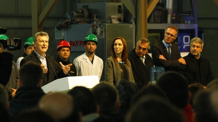Mauricio Macri junto a la gobernadora bonaerense María Eugenia Vidal encabezaron la inauguración de una planta de fertilizantes en la localidad de Pergamino. Entre los presentes también estuvo la Senadora Provincial Elisa Carca.