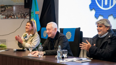 Cecilia Comerio, Walter Correa, y Naldo Brunelli, encabezaron esta tarde el encuentro "Los derechos de los trabajadores ante los avances de la derecha. Desafíos de la organización sindical".