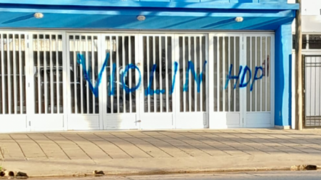 Luego de conocerse el beneficio que le otorgó la Cámara Penal a Marcelo Fabián Nuciari, apareció un graffiti en el frente de la concesionaria de su propiedad.