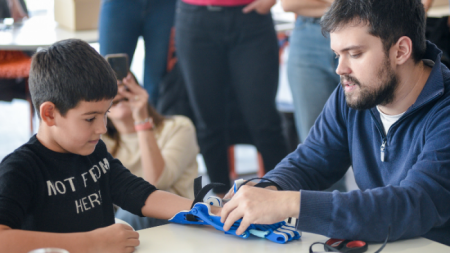 Colaboradores de Banco Macro junto a Gino Tubaro llevaron adelante una Jornada de Voluntariado donde se construyeron 20 prótesis mecánicas impresas en 3D que fueron entregadas en forma gratuita a chicos que las estaban esperando.