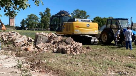 Maquinarias municipales comenzaron a trabajar sobre calle Rivadavia derribando parte del muro del Ejército, desde la esquina de San Lorenzo hasta los vestuarios de la cancha Paraná, emplazados sobre el lateral de Rivadavia entre Necochea y Pringles.