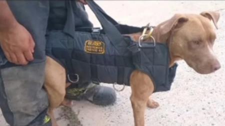 Un perro fue rescatado en horas del mediodía de este viernes por personal de Bomberos luego de caer por la barranca en la zona del Parque San Martín, a la altura de calle Colón y Ameghino.