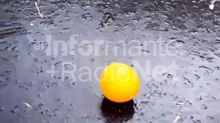 Un vecino de Villa Canto compartió imágenes de la helada de esta madrugada. Se observa el agua de la pileta congelada de su patio, haciendo rodar una naranja.