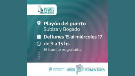 Del lunes al miércoles próximo, los vecinos de la ciudad podrán realizar trámites de manera gratuita ante el Registro Provincial de las Personas, que dispondrá un tráiler en el playón de la sede administrativa portuaria.