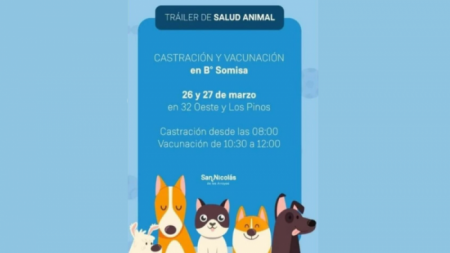 Este martes 26 y miércoles 27, el tráiler de Salud Animal brindará el servicio de castración y vacunación antirrábica en 32 Oeste y Los Pinos de barrio Somisa. La atención es gratuita y por orden de llegada.