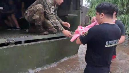 Personal de policía Bonaerense, Comisaría Segunda, Ejército y Bomberos trabajan en la evacuación de vecinos inundados en barrio 9 de Julio, Los Pinos y Virgen del Luján.