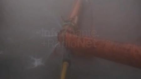 Viviendas ubicadas al lado del terraplén de La Emilia se encuentran inundadas por las intensas lluvias. Mientras tanto el personal de cooperativas pertenecientes a la municipalidad, trabajan con bombas para sacar el agua.