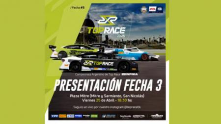El viernes 25 de abril a las 18:30, en la Plaza Mitre, los fanáticos del automovilismo podrán participar de la presentación de la 3º fecha del Campeonato Argentino de Top Race.